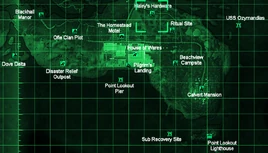 Like most houses in Point Lookout, Haley's Hardware is a small wooden shack with a pile of rubble next to it.