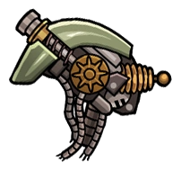 The hardened Assaultron head is a pistol featured in Fallout Shelter that comes from an Assaultron robot. It is based on the salvaged Assaultron head from the Fallout 4 add-on Automatron.
