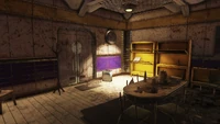 There is also a safe room built below the estate, accessible via the elevator, originally functioning as Daniel Hornwright's private laboratory.[1] It can only be accessed during the quest Trade Secrets. Inside the safe room is Penelope Hornwright herself, who only recently returned to her family's estate. A weapons workbench and a tinker's workbench can be found along the western wall.