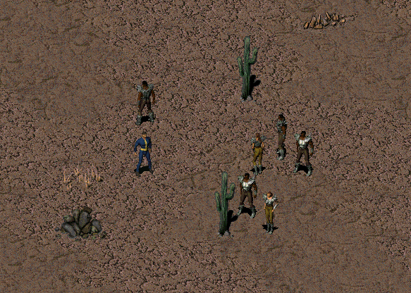 The Vault Dweller can meet a group of Hub policemen when traveling around the Hub (up to 2 squares from it). They won't trade with the player character, but will make comments about current events. They may also warn one to holster their weapon and not to make trouble, among similar comments.