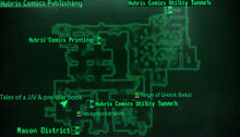 Hubris Comics is a location in the Capital Wasteland in 2277. The building houses the offices and printing presses of the company of the same name.