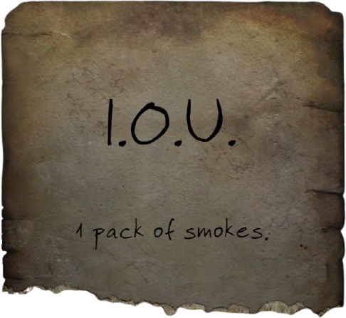 I.O.U. smokes is a paper note in Fallout 76, written by Charlie Walker.[1]