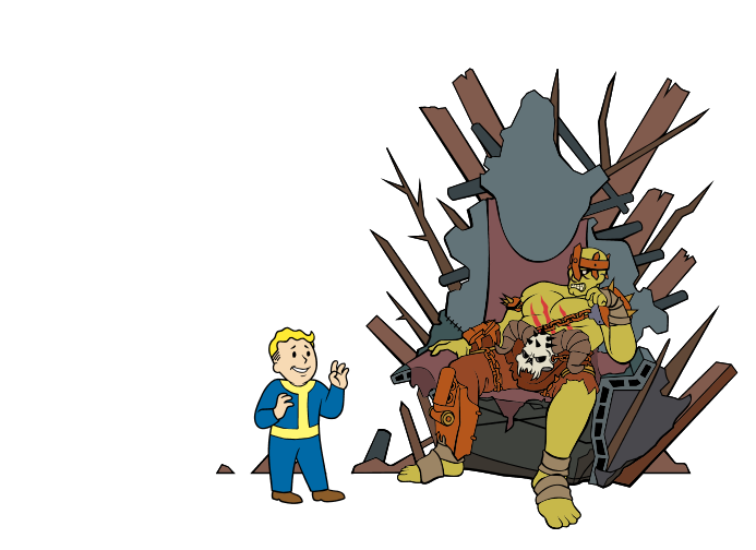 However the situation is resolved, the player character returns to Magpie in the Chop Shop's diner basement, where she is talking with Eugene. She reveals Eugene was once a raider named Spike, but Eugene insists he is a changed man. Magpie must then be informed how the player character resolved her debt issue.