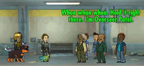 | Whoa whoa whoa. Hold it right there. I'm Overseer Patel. You can't just walk around in here all willy nilly! |