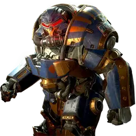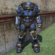 Blue and gold paint job for power armor, based on the appearance of the powered boxers from the Diamond Dust casino.