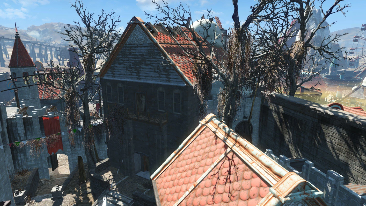 Following the war, the castle became Oswald's last line of defense from the Sole Survivor, situated in the northeast corner of Kiddie Kingdom at the farthest point from the zone's south and west entrances.