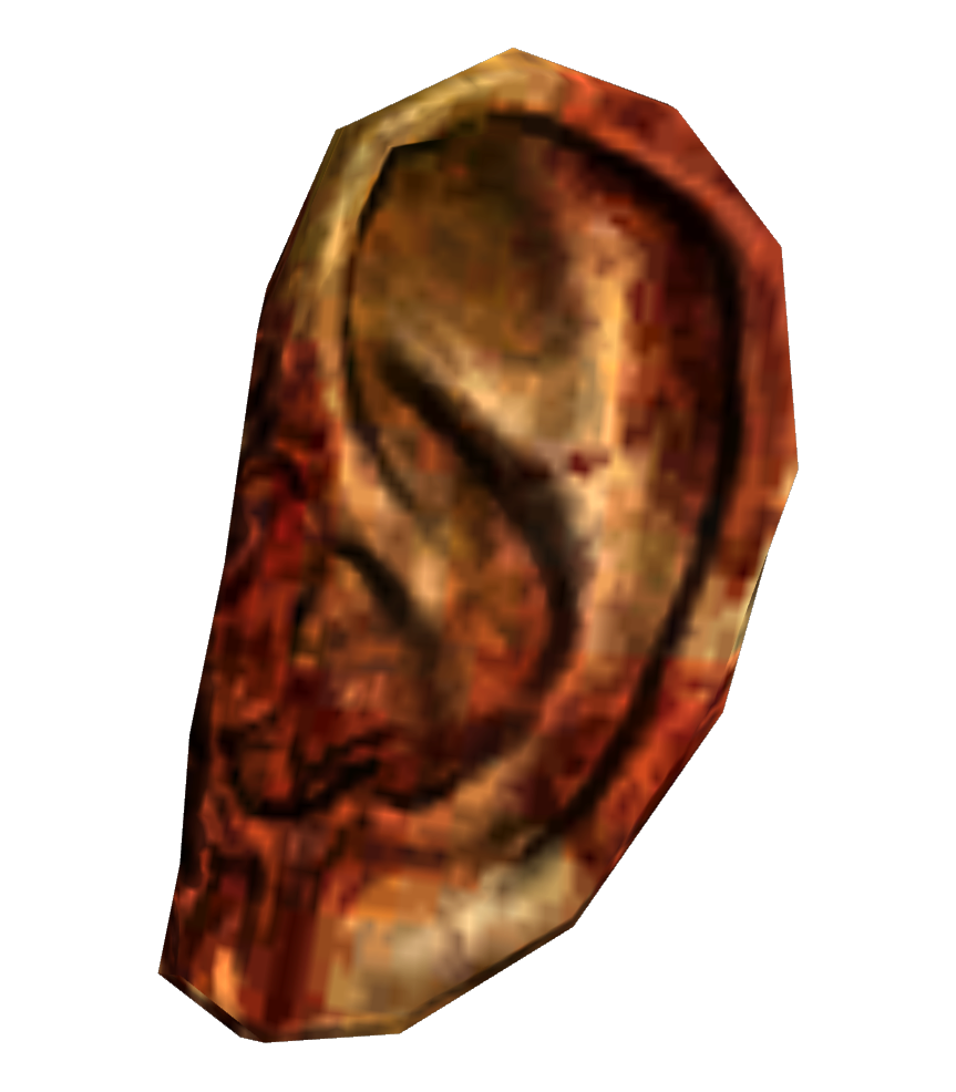 The ears will only be in the victim's inventory upon death, unlike the NCR dogtags. The ears have no other actual uses outside of this quest, although they are weightless if the player character would like to "collect" them.
