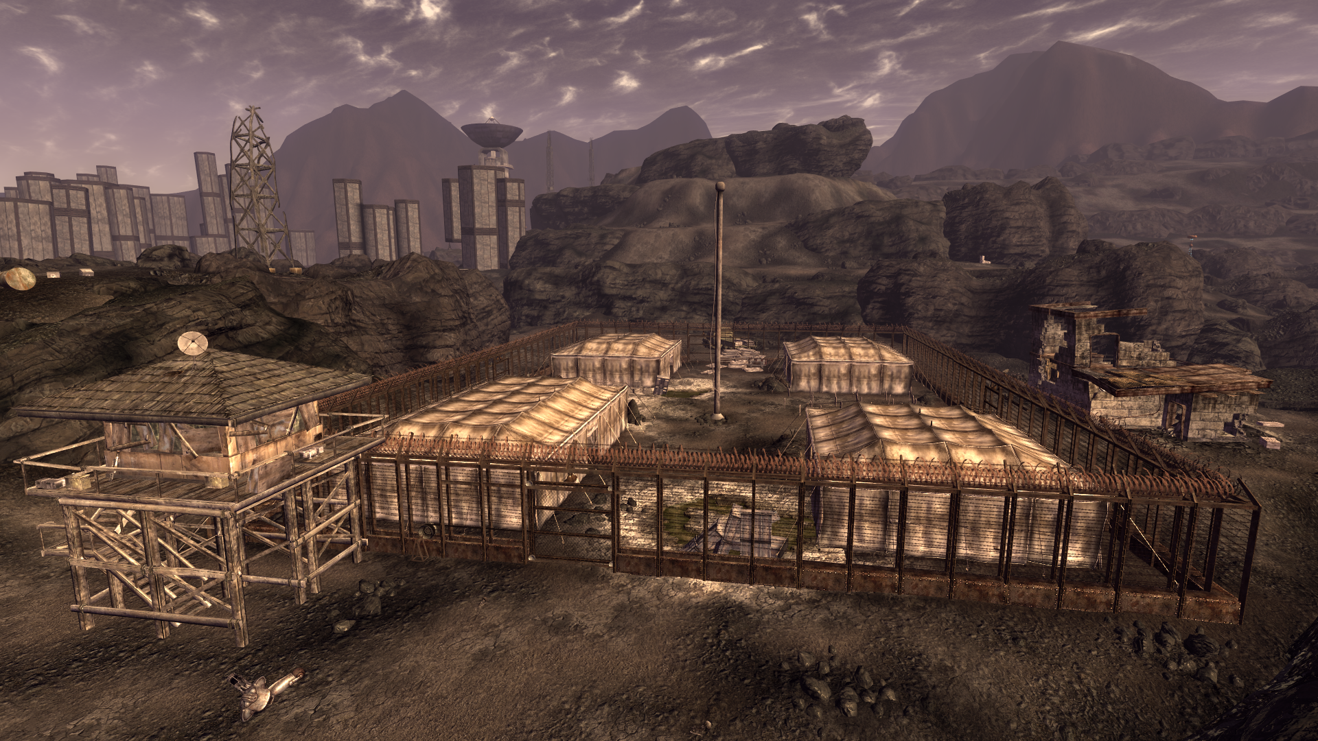 Situated northeast of the Big MT west tunnel and southeast of the construction site in the ordinal northwest side of Big MT, the location consists of a fenced-in area with four gates. The interior is filled with field tents containing rusted bunk beds, with a number of makeshift graves outside.