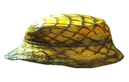 The yellow slicker hat appears as a yellow rain hat with a fine net pattern over it. It provides a small bonus to Luck when worn. It is also one of the few items that can be worn with the faded visor , granting the player both item bonuses. The yellow slicker hat cannot be scrapped.