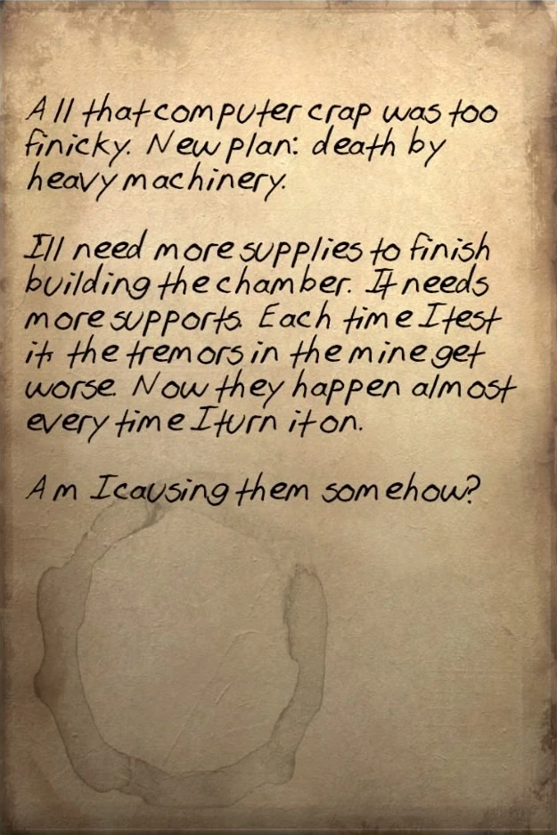 I'll need more supplies to finish building the chamber. It needs more supports. Each time I test it, the tremors in the mine get worse. Now they happen almost every time I turn it on.