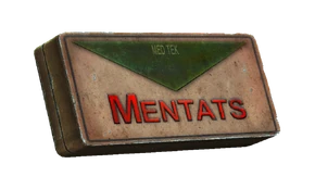 A popular recreational drug for enhancing memory and mental speed performance, Mentats are most useful for characters with low Intelligence and Perception, as they grant a useful bonus for both these SPECIAL stats. The effect lasts only a short time, leaving the user feeling tired and unfocused afterwards, and they are addictive by design, with withdrawal causing migraines and irritability.[Non-game 2]