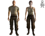 - Female - Similar to the male version, however, ammunition belts are replaced with two leather strips.