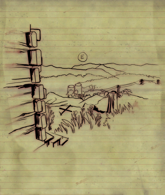 - A strategy that may help is to walk a thin line between Thunder Mountain Power Plant yard and Southhampton Estate, with the player's compass marker pointing directly at Southhampton Estate in order to get the correct angle. When taking this path, after going under the bridge towards Southhampton Estate, you should have a tree pass your right, then another pass your left, then have a third tree be in front of you, the mound being somewhere in front of the third tree where you are standing.