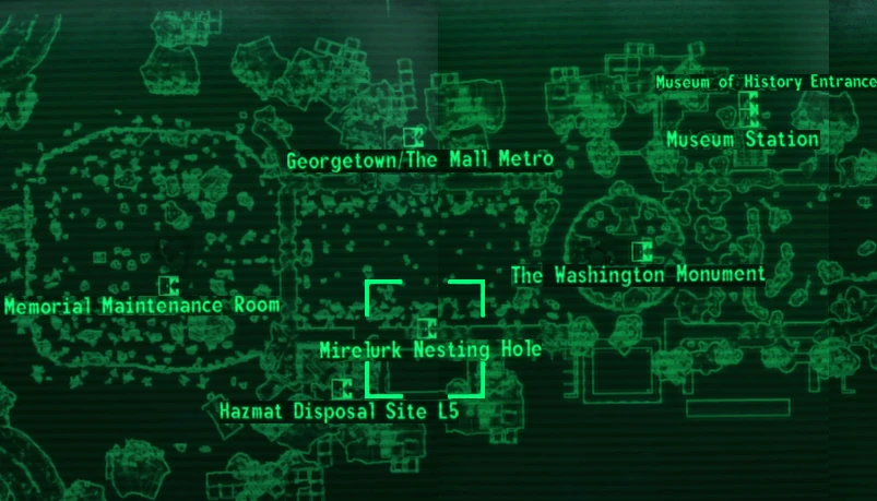 The mirelurk nesting hole is an unmarked location in Fallout 3.