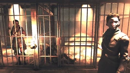 In the lab, kill the Hellcat mercenaries serving as guards, and find Sheena and Burke in the nearby cells, who are stunned to see Marcia with the Vault Dweller after what they pulled previously with the weapons cache. Burke can have their necklace returned to them, and the Vault Dweller can choose to either leave them in the cells to rot, or find some way to let them out. Use the nearby terminal to open the cells, and grab the holotape as well to complete the optional objective.