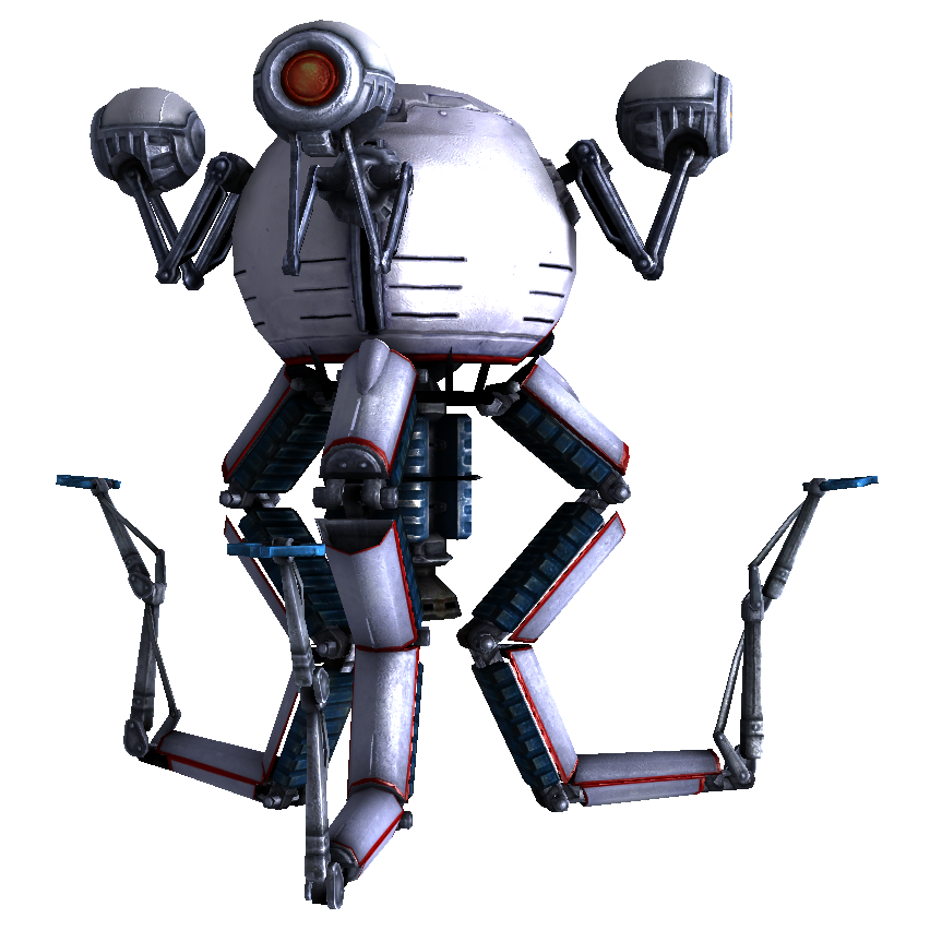 Its sub-assemblies include three arms and three eyes. The former are segmented and highly flexible. Their modular design allows them to accept a variety of manipulators, from a simple pincer, through a titanium saw and laser cutter,[1] to military-grade weapons such as a plasma blaster or a flamethrower.[23] Their only limitation is the fact that they cannot lift objects heavier than 18 kg (40 lbs).[24] Eyes are mounted on flexible eye stalks,[25] giving it excellent spatial awareness and a nearly 360 degree field of view. They are completed by a sophisticated sensor package, including navigational,[26] chemical[27] (including olfactory or scent detectors),[28][29] and nuclear sensors.[30] Other features of the robot line include the ability to perform self-diagnostic and self-maintenance, allowing a single unit to function for an extended period of time (even two centuries in some cases),[31] and a water condensator for preparing canisters of purified water.[32]