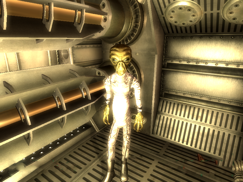 - During the This Galaxy Ain't Big Enough... quest, after activating the Engineering core teleporter to bring Sally and any of the other surviving non-player characters up, and after being given the objective to "Disable the Death Ray" and/or "Make Your Way to the Bridge", these objectives may auto complete, moving you to the objective "Defeat the Alien Captain" without any interaction by the player. There does not appear to be a specific trigger for this happening and it may happen at any time without any notification given to the player that these objectives have been completed. This results in being unable to complete "Disable the Death Ray" quest and prevents you from entering the Living quarters area. Changing the active quest is a possible fix. Saving the game with the problematic objectives still incomplete on a frequent basis, and reloading your game if they auto complete without the players interaction does work as well, but is very tedious. Once these two objectives have been properly completed by the player, there does not appear to be any ill effects to any of the other objectives in this quest. Hopefully this problem will be addressed in a future patch. It may also be possible to use console command "movetoqt" to move the player to current quest target, although it is unknown if this has any other side effects.