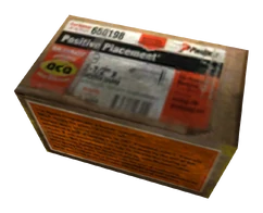 The texture used for nail boxes is actually scanned from a modern box of nails. While the texture for nail boxes is low resolution, the name of the real-life tool company, Paslode, can be made out in the upper right corner.