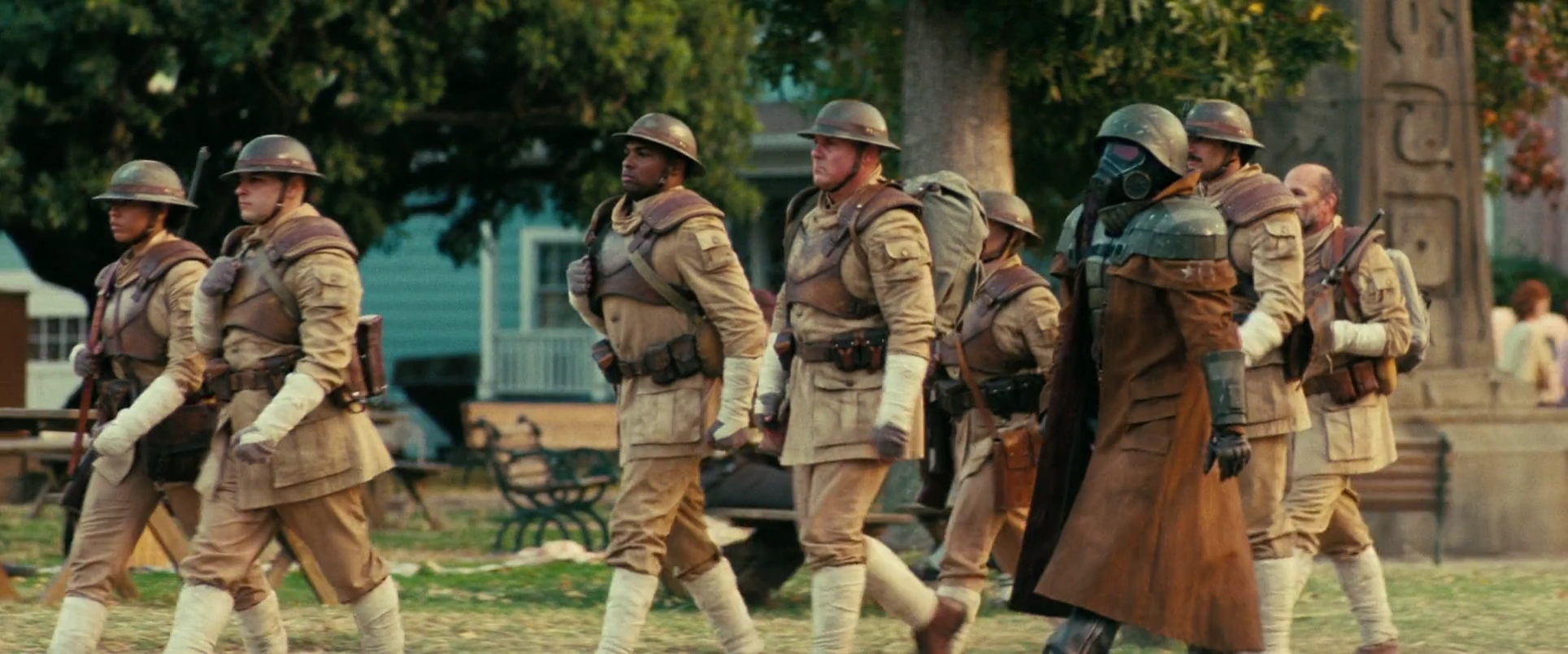 A Ranger marches alongside a unit of NCR troopers in Shady Sands.