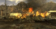 "Forces of Caesar's Legion, under the command of Vulpes Inculta, have swept around the poorly defended Camp Searchlight [6.16] to sack Nipton and kill every living creature within. Ironically, this camp had previously been terrorized by Powder Gangers, who were routing the regular population before they fell to the Machetes and bloodlust. The signs of devastation are obvious from outside this settlement; black smoke rises from the town, corpses are strewn on pyres, and victims crucified to telephone poles." - ↑ Nipton, California on Wikipedia
