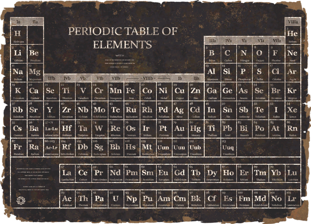 The periodic table displays the 113 known elements and can be found posted across the wastelands.