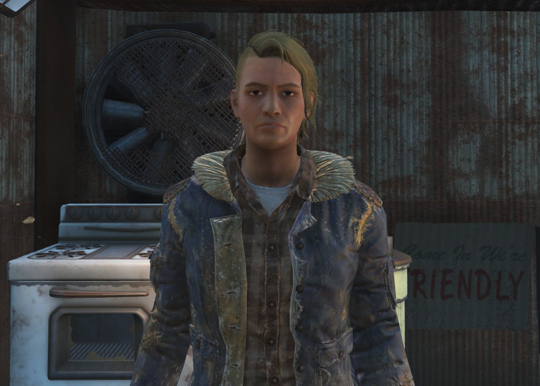 She runs her butcher's shop, Choice Chops, in the Diamond City market selling all kinds of meat and a few bullets. Polly spends her days chopping up meat to sell. However, she may not be entirely satisfied with her job butchering the brahmin she sells at her store, as she uses some of her spare time to compose poetry on her terminal, where she also expresses her enjoyment for dancing.