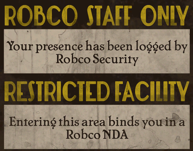 Your presence has been logged by RobCo Security RESTRICTED FACILITY Entering this area binds you in a Robco NDA |