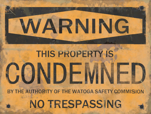 THIS PROPERTY IS CONDEMNED BY THE AUTHORITY OF THE WATOGA SAFETY COMMISISON NO TRESPASSING |