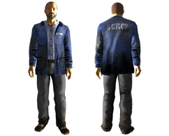 One of four outfits worn by members of the Powder Gangers , the plain variant is more common compared to the guard armor , simple and soldier variants. When equipped, the outfit does not grant any Damage Threshold but is considered Powder Ganger faction armor. It can be repaired with the Powder Gang plain, simple, and soldier outfit variants, and, with the Jury Rigging perk , both light armor and other pieces in the "clothing" category.