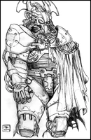 A suit of power armor complete with skull dome, that is styled to mimic the appearance of Captain Cosmos villain, the undead bounty-hunter Skellscream.