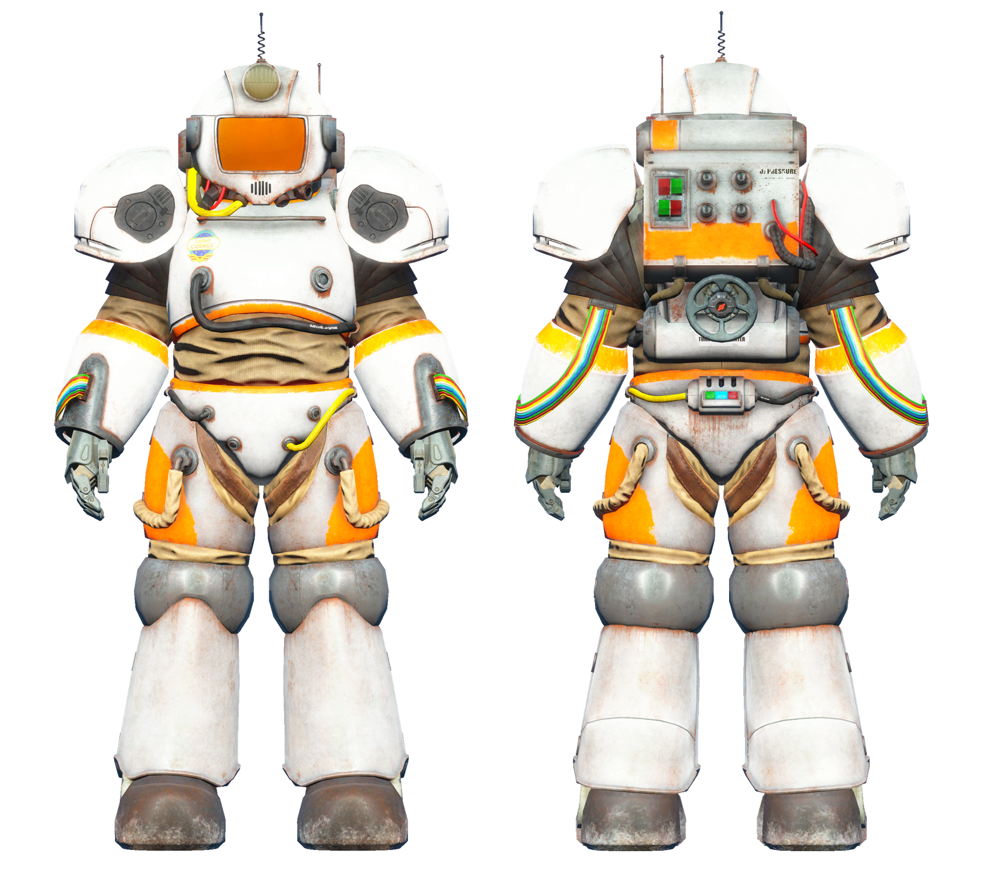 A suit of power armor developed by the USSA for space exploration. A suit of armor was loaned to the production of the Captain Cosmos TV show in an attempt to rekindle public support for the fledgling Mars Shot Project.