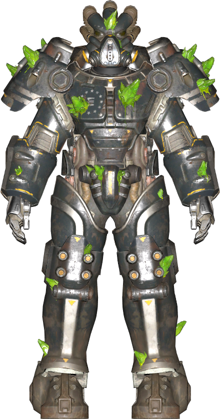 Developed by the Enclave, it was used by Enclave Squad Epsilon to guard Project Vulcan, a research program involving Ultracite crystals and inducing mutations. However, Epsilon Squad fell victim to the Scorched Plague, and their armor grew Ultracite crystals.
