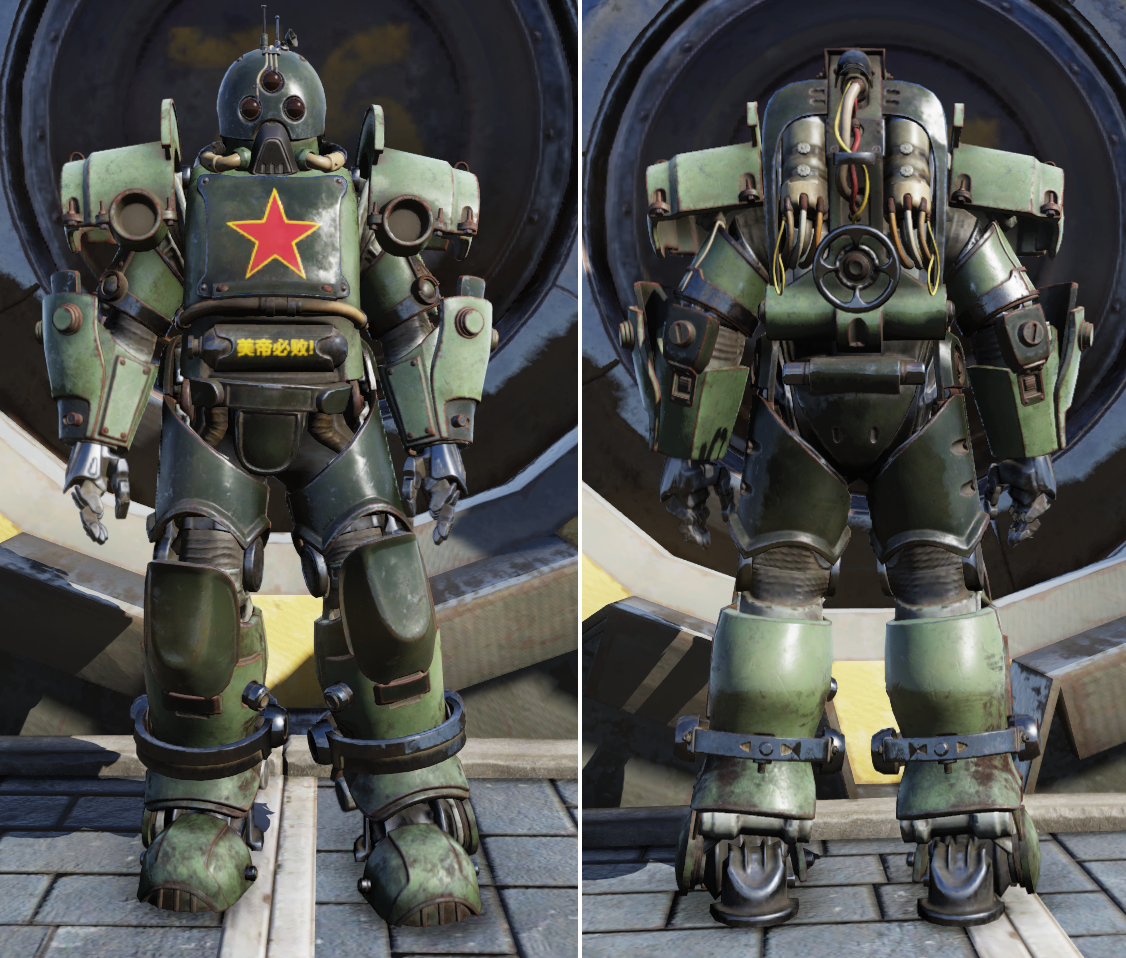 A suit of power armor designed by the People's Republic of China, it is based on captured American suits of power armor. The communist power armor would be assigned to some Chinese Commissars.