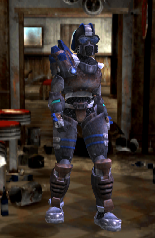 Power armor in Fallout: Brotherhood of Steel does not resemble that of traditional models shown throughout the franchise—such as those manufactured and or used the used by the Brotherhood of Steel, Enclave, or United States military. However, the model does share some loose visual similarities with ultracite power armor. The power armor presented in-game is a result of an attempt by Vault-Tec to produce combat-capable armor comparable to that of military and civilian-grade models. The armor would be developed in their own Corporate Vault.