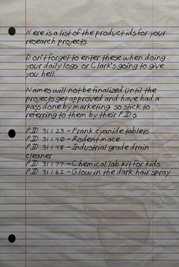 Product ID cheat sheet is a paper note in Fallout 76, introduced in the Expeditions: The Pitt update.