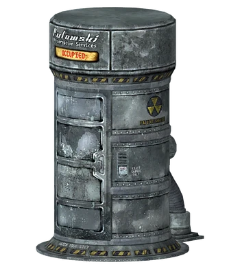 Pulowski Preservation shelters are coin-operated, one-person fallout shelters found on street corners throughout the more urban areas of the Capital Wasteland, the Commonwealth, and Appalachia constructed by Pulowski Preservation Services.