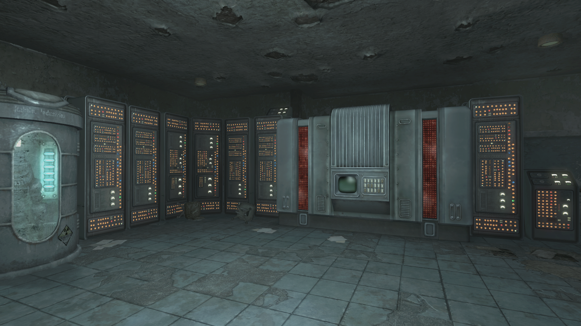The RobCo Production Mainframe is part of the Wasteland Survival Guide quest, where Moira asks the Lone Wanderer to install a processor widget in the mainframe, and optionally also hacking it. Once the widget is installed in the mainframe, every robot in the facility will activate and become hostile. To hack the mainframe and complete the optional objective, a Science skill of at least 50 is needed.