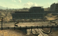 However, situations in the field were more tense, and Outcast patrols and Brotherhood patrols would regularly enter combat if they encountered each other in the wasteland, though this may have been rare.[32] The skirmishes extended to Brotherhood outposts such as the GNR building plaza, which earned both sides the ire of the building's owner Three Dog, who openly called for peace between the factions on his radio station (or at least to stop fighting in his "own backyard").[33]