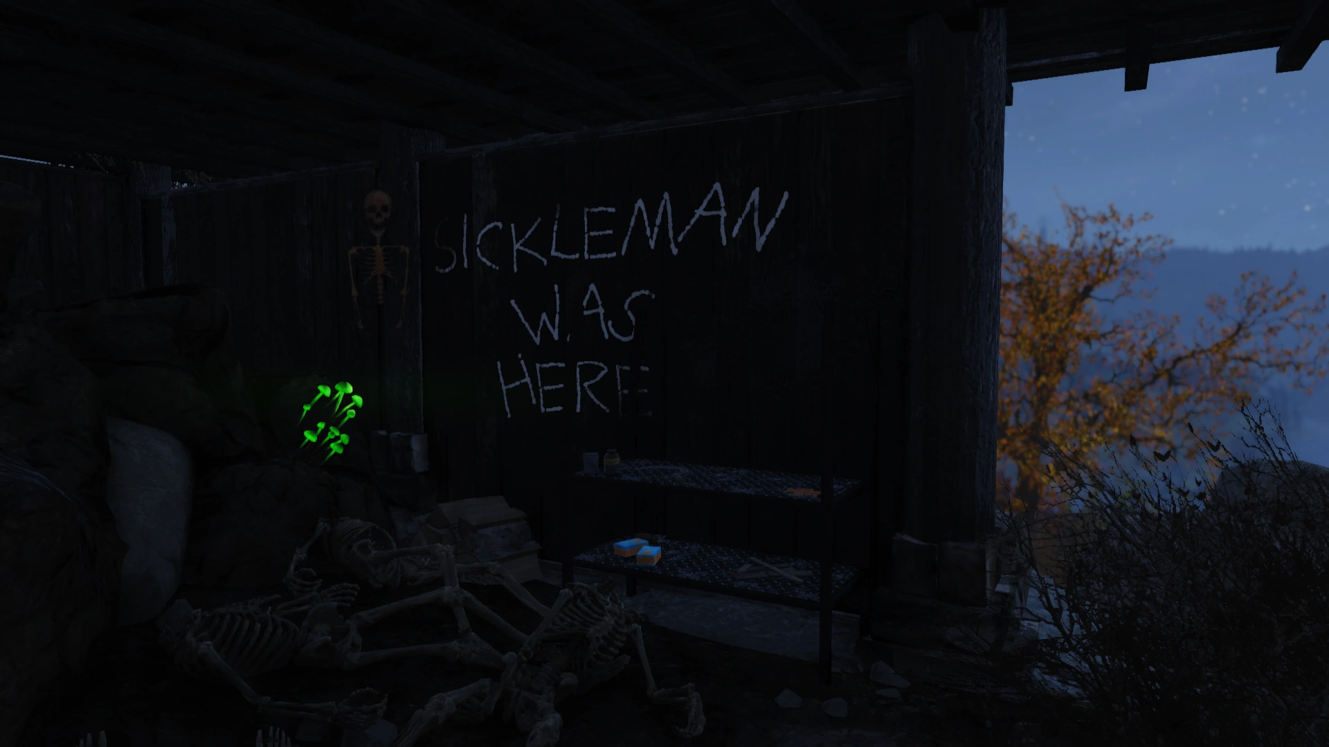 Operating prior to 2102,[1] the Sickleman has earned himself the title for his preferred tool of murder, the sickle, which he uses to decapitate his victims. He used North Kanawha lookout as a hideout or storage of his victim's bodies, even graffitiing that he was there, but left Appalachia for a time until he returned back to 2103. Word of his activity spread around and was even picked up on by Steven Scarberry.