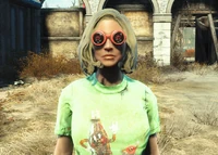 ↑ 1.01.11.2The Sole Survivor: "I'll keep your secret. You can trust me." Sierra Petrovita: "Well, okay. To be honest I'm so excited I can barely keep it in! It'll be a relief to finally tell someone. I guess you could think of me as the world's biggest Nuka-Cola fan. I've been obsessed with the stuff since the first time I tasted it. I collect all the merchandise I can find, like these awesome Cappy Glasses I'm wearing. But these aren't just ordinary sunglasses. They were part of a really cool contest that started just before the war. The winner of the contest would get to meet the famous John-Caleb Bradberton himself!" The Sole Survivor: "Oh boy! John-Caleb Bradberton! How exciting!" Sierra Petrovita: "I know! That's exactly how I felt when I first learned about the contest. It's so nice to meet someone who really understands. So to win the contest, you had to find ten images of Cappy, the Nuka-Cola mascot, hidden throughout the park. Each image has part of a code or something, and only these special glasses can reveal it. Now, I know what you're thinking. Bradberton's long gone, who cares about the contest anymore? Well I'm betting that somewhere in his office is the Original Nuka-Cola Formula! That formula was one of the great mysteries of the soft drink world, and it would be the crown jewel of my collection. If you can help me get it, I promise it'll be worth your while." (Sierra Petrovita's dialogue)