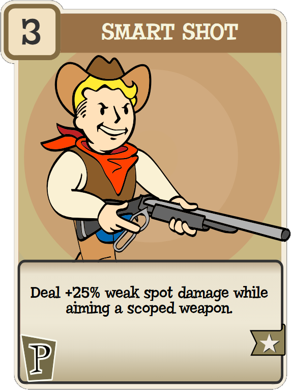 Smart Shot, formerly Master Rifleman, is a Perception-based perk in Fallout 76, renamed and redesigned in the Gone Fission update.