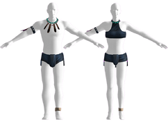 The Sorrows adorned outfit consists of a simple loincloth for males, with an additional sports bra-style top for females. It is decorated with necklaces, an ankle band and an armband with two small feathers.