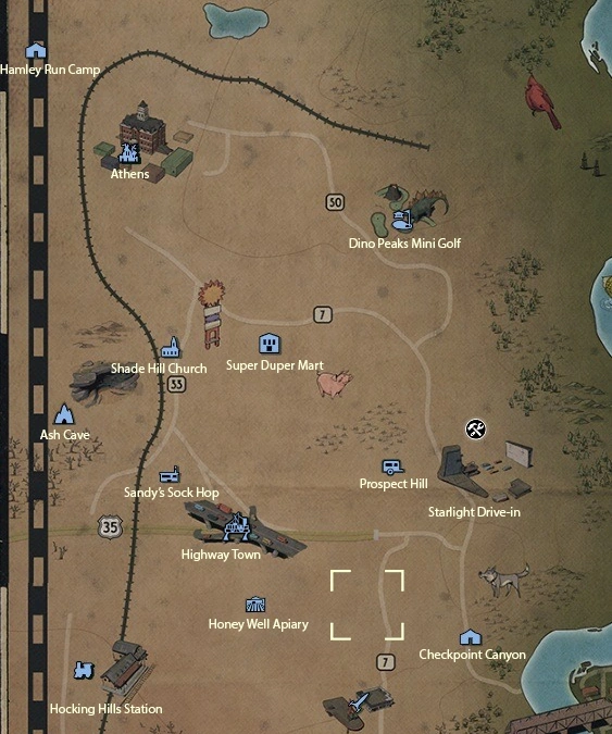 The South Ohio Evacuation Center,[1] also known as Oak Hill,[2] is an unmarked location in the Burning Springs region of Appalachia in Fallout 76, introduced in the Burning Springs update. It is located east of the Honey well apiary, along the road.