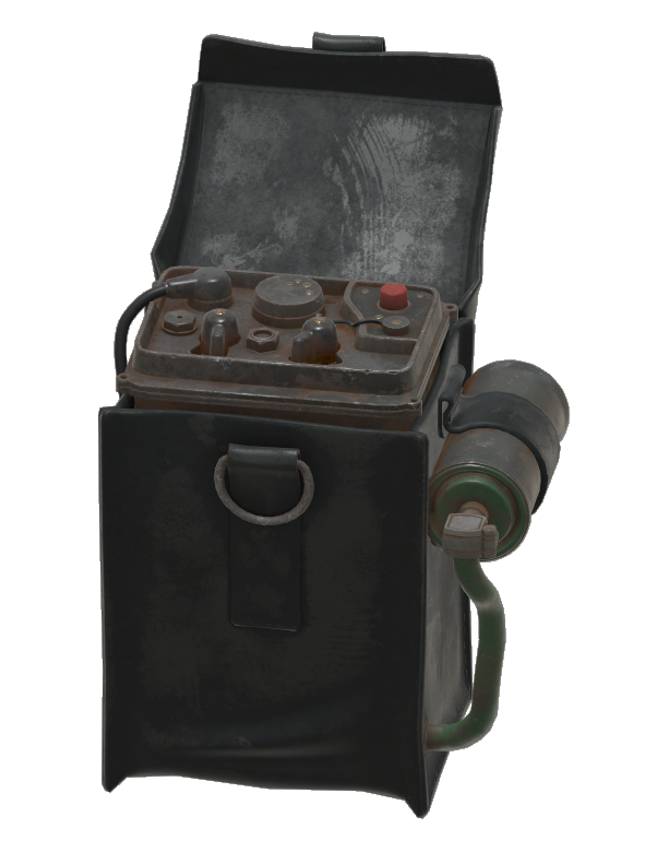 The underlying science was never fully understood by American scientists, with American produced stealth technologies reliant on reverse engineering Chinese Hei Gui stealth armor,[1] but these proved reliable enough for military purposes. In fact, it was enough to convince the military to have had these devices mass produced by RobCo.[6] Even more, work started on a more advanced Stealth Boy mark II prototype.[7] After the Great War, developed by Enclave scientists in Appalachia, the Stealth Boy Mark III was an overall improvement of the Stealth Boy, coming at the cost of reverting back to a specialized canvas holder design rather than a wrist-mounted design.