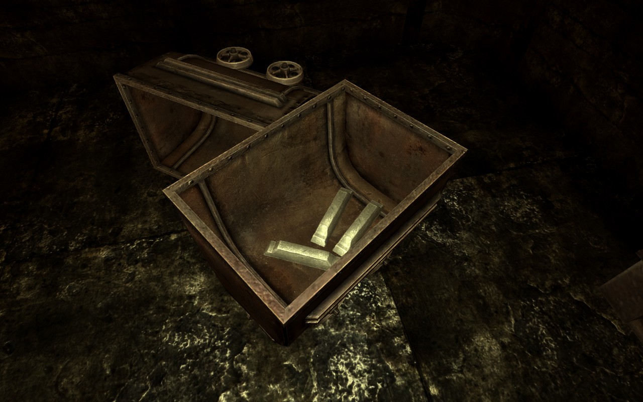 Note: Picking an Average lock (50 Lockpick) is required to gather all 100 ingots. Lockpick can be temporarily boosted by using chems and/or wearing apparel that increases PER and/or Lockpick skills.