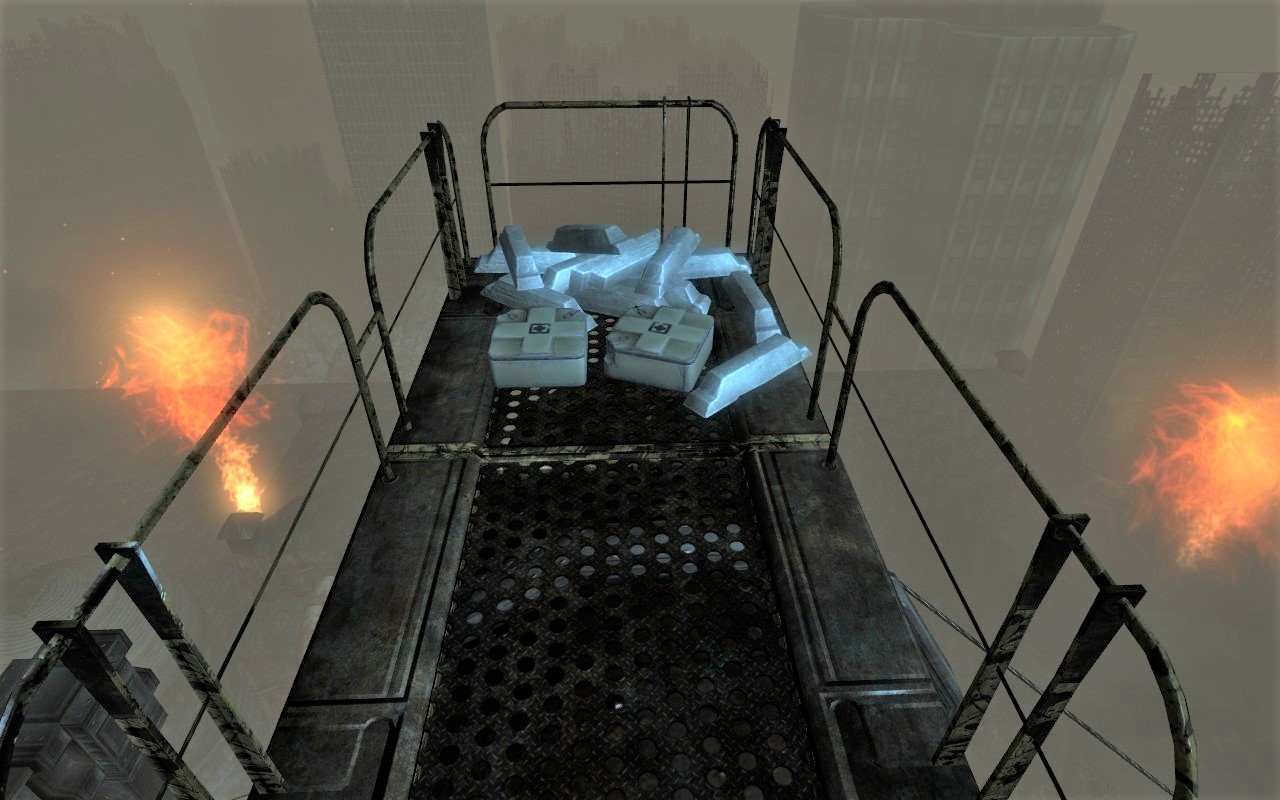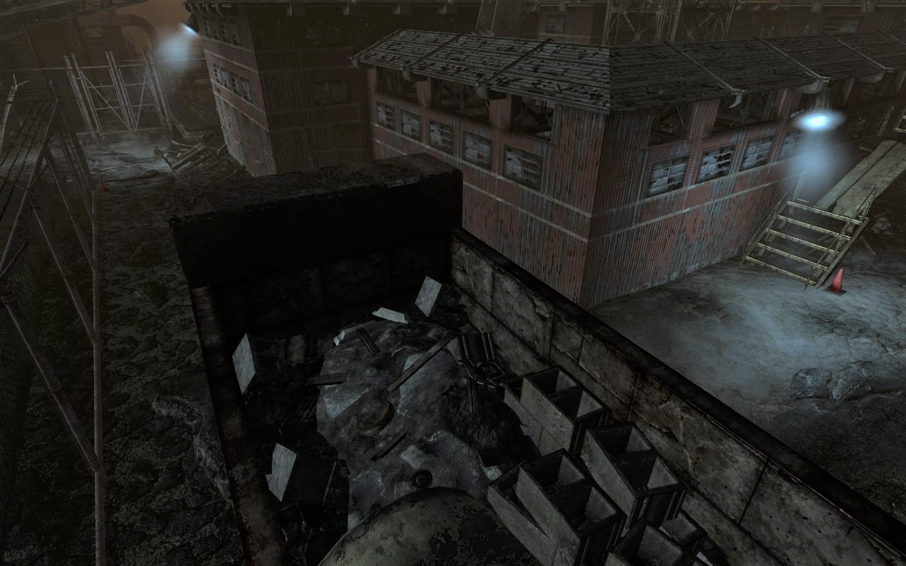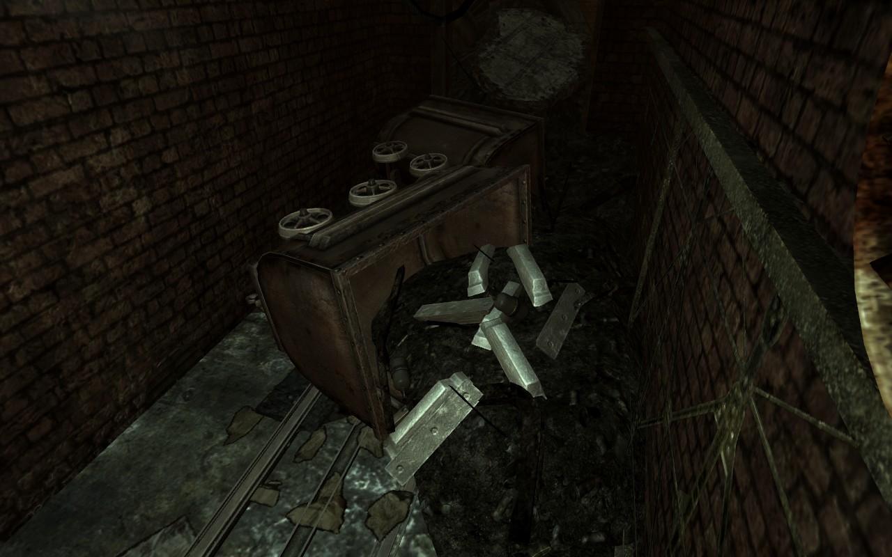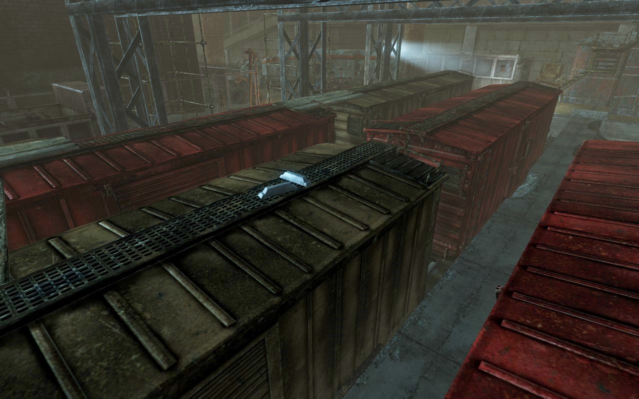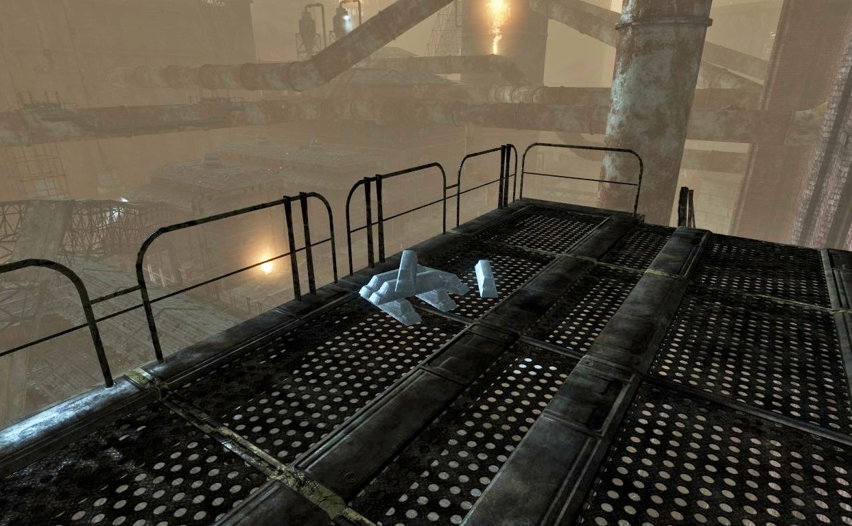 3 | Activating the switch at the 'end' of the supply plant opens the shortcut back to the entrance, which will close after some time or upon leaving. Return through the abandoned area which links the steelyard and The Mill. At the end of the caged catwalk, the hole in the fence to the right of the door leads to a pair of mine carts. The upright cart has the last three ingots in it. The first time entering, these ingots will be inaccessible. Returning to the area from the steelyard after collecting at least 10 ingots will reveal a trog that has torn a hole in the fence, allowing access to the mine cart. |