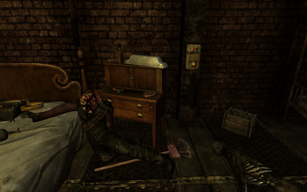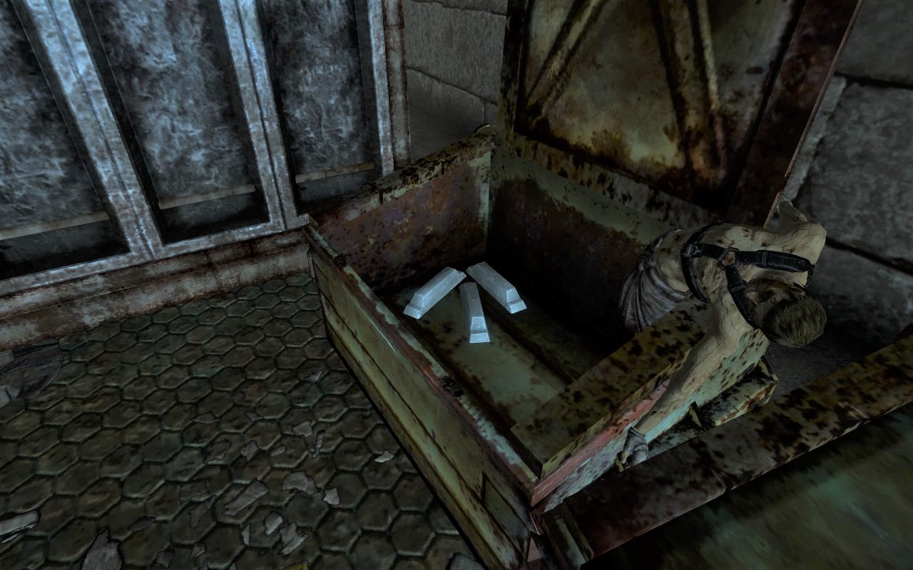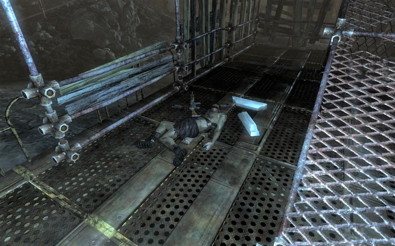 2 | Over the barbed wire fence to the south, then to the west towards dead end. Underneath the pipe running along the wall, there is a dead slave and two ingots. |