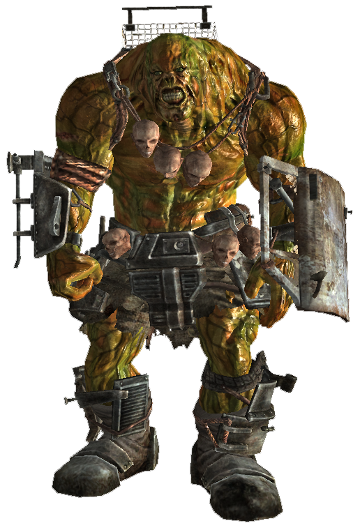 These super mutants are the oldest and strongest of their kind, and as well as being many times larger than any other humanoid creature, they are no longer capable of intelligent speech, due to brain degradation. Instead, the only form of communication they are capable of are monstrous roars. They are usually armed with an oversized fire hydrant mounted on a large water pipe. Other than that, they use their enormous fists in a fight. Either way, both weapons are heavy-hitters and will cause major damage against any enemy smaller than them.