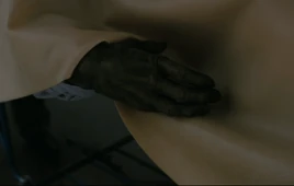While working at the Enclave research colony, Siggi Wilzig sees a large, wrinkled green hand sticking out of a sheet on a gurney pushed by two Enclave scientists.