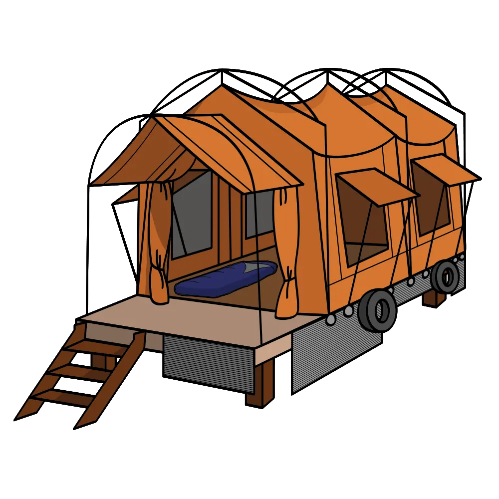 The survival tent is a small tent that contains a Stash box, a sleeping bag, a cooking station, and a scrapbox. Depending on the tent, it may also include an instrument or/and a tinker's workbench.